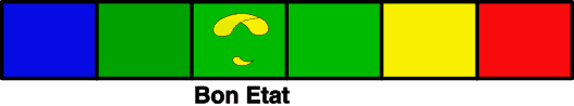 Surtout les curseurs pour récapituler l’état de votre voile, utilisés par les ateliers seront tous calculés avec le même algorithme et représenterons uniquement l’état global de votre voile sur une échelle de Neuf à Réformé. Exit les % et autres durées de vie restante qui sont totalement impossibles à calculer… Ces curseurs font aussi l’objet d’une charte graphique, allant du Bleu au rouge, qui les rendront immédiatement lisibles par tous. Voici celui que vous trouverez dans nos rapports pour une voile en bon état.