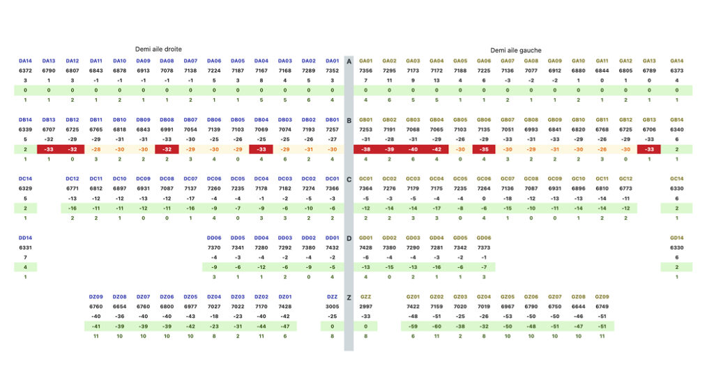 Notre logiciel, développé en interne, nous permet de calculer et visualiser les écarts de mesure, de symétrie et de calage de la voile. Il nous donne aussi depuis peu l’écart global de la voute.