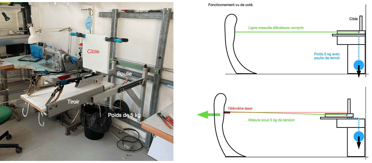 La mesure est prise sous 5 kg de tension avec un télémètre laser de précision, puis transférée dans notre système de traitement et visualisation du résultat.