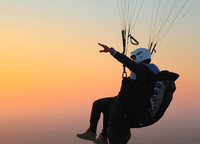Le parapente descend et monte grâce aux courants d’air ascendants. Vous décollerez pour un vol de 15 à 20 minutes en fin d’après midi. Votre pilote vous fera évoluer dans le ciel en surfant sur le vent et les reliefs.
